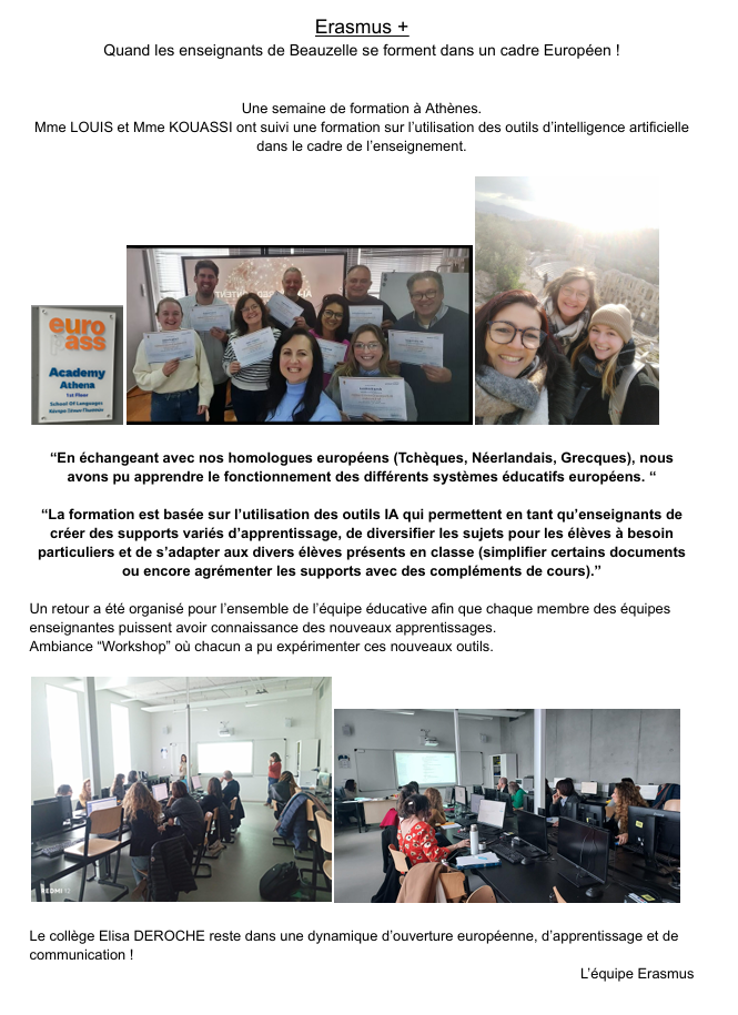 Quand les enseignants de Beauzelle se forment dans un cadre Européen ! Une semaine de formation à Athènes.